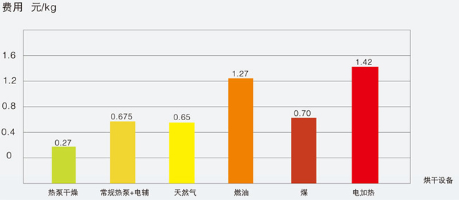 1、節(jié)能高效 熱泵除濕干燥機的運行費用只有燃油干燥機的40%,燃煤干燥機的60%和電熱加熱設備的30%。